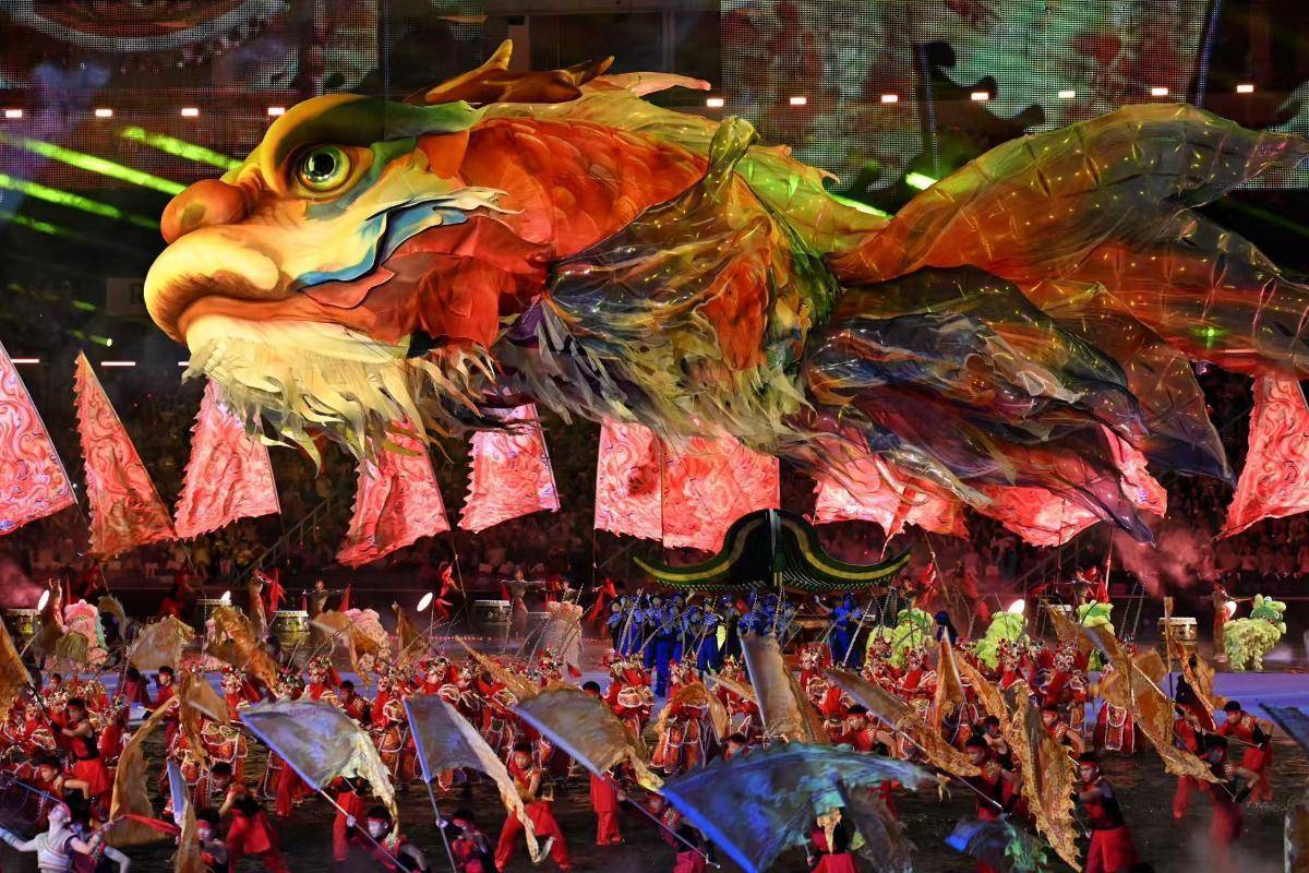巨型龟灯的视觉效果令人震撼。图片来源齐鲁晚报 湖北日报评论员胡勤 灯笼鱼、舞狮、英国歌舞……11月9日晚,第十五届全运会开幕式上,一场气势磅礴的非物质文化遗产表演让观众大饱眼福,尤其是45米长的巨型飞天灯笼鱼,金光闪闪,游遍世界。雷南的审美观和民族特色被表现得淋漓尽致,视觉效果震撼。近年来,中国独特的民族文化属性日益以前所未有的活力出现在世界舞台上。鱼灯之美不在于其表面的“中国式”装饰,而在于其吉祥寓意与至高审美的高度统一,源于民间传说,积淀了数千年。这是基于Reinan fi的大胆创新嘘灯笼。从江南青瓷的盘根错节的荷枝,到闽南屋顶上的燕尾脊。从陕西剪纸的鱼戏荷叶,到粤绣独特的金银线,这些深深扎根于大地的文化符号,既是对美好生活的向往,也是无数气质的审美结晶。它绝不是一个静态的标本,而是一个活的基因,始终活跃在日常生活中,流淌在人们的血液中。全运会开幕式的核心美学理念是“植根岭南文化的现代转型”。你可以看看雷南,感受时代。通过色彩的历史、视觉结构和创意转化,对岭南文化进行现代演绎,展现“开放、融合”的新时代、新审美。当古老的地方符号被赋予现代气息,焕发出勃勃生机它们令世界惊叹,它们成为我们取之不尽的财富矿藏和文化信任的最坚实基础。