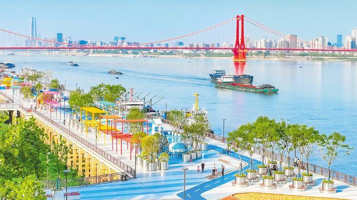 随着时间的推移,河流呈现出新的色彩,攀上斜坡,越过山脊。建设现代武汉的车轮与时俱进,顺应潮流。